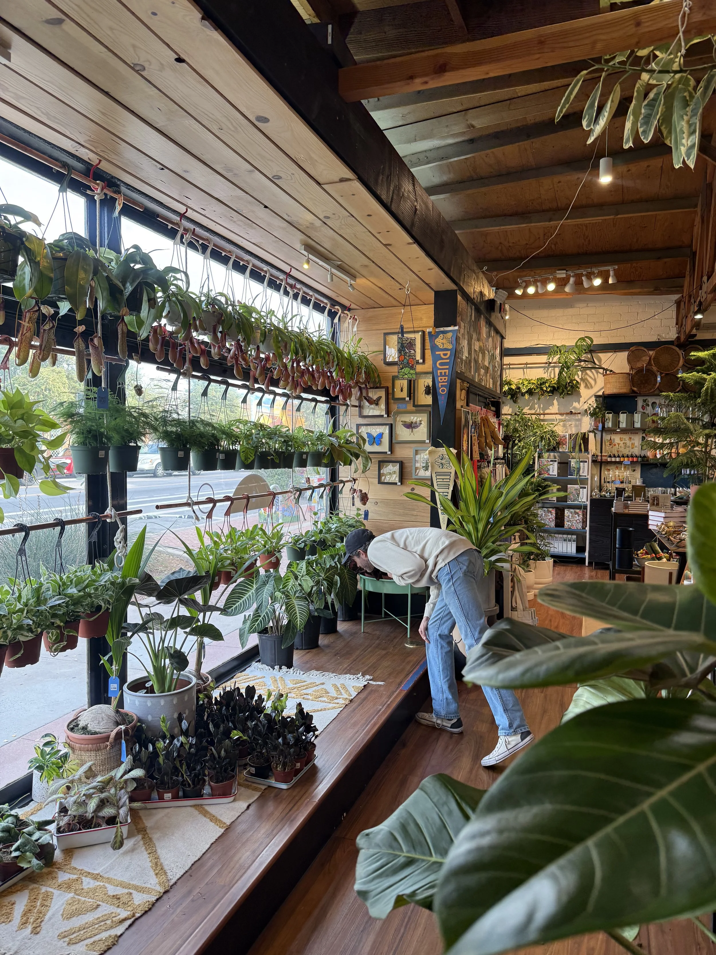 When you step from the sidewalk through our pressed tin doors, you’ll be greeted by friendly faces and an impressive historic warehouse brimming with a wide variety of unique plant specimens and a massive array of curated planters, books and gifts.